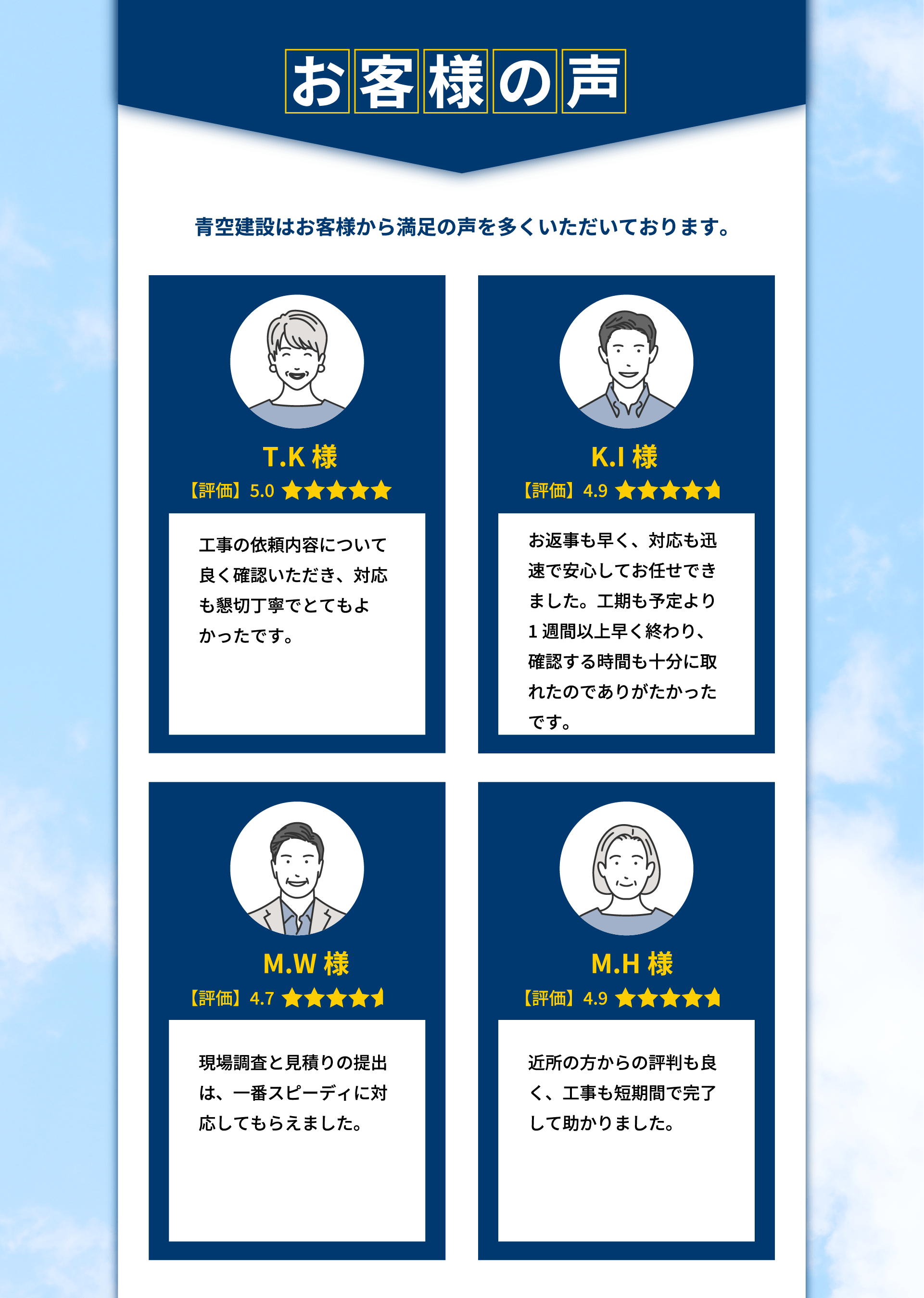 • はい。整地もお見積りに入っております。ただし、コンクリートでの整地などは別料金となりますので、お見積りの前にお申し出ください。