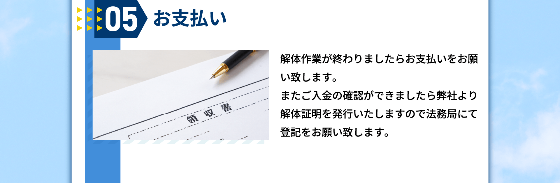 • 解体作業で出た廃棄物は建設リサイクル方に基づき適正なマニフェスト処理をいたしますのでご安心ください。